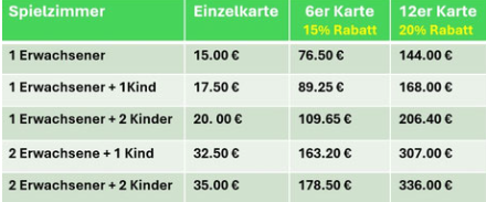 Kinder von 12 bis 18 Jahren werden mit 10,00 € berechnet.